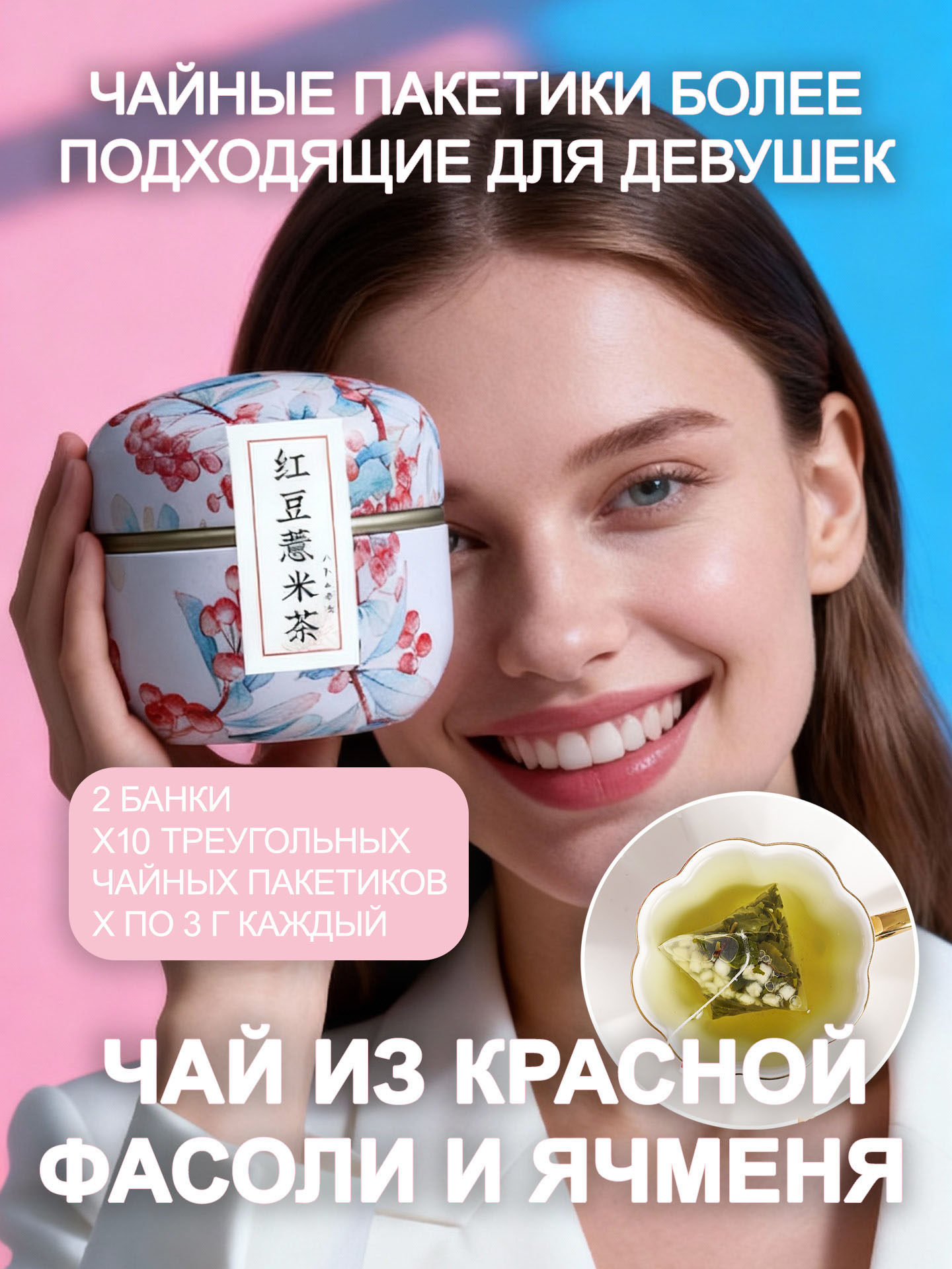 Адзуки & йибы чай в пирамидках 3 г, 10 шт. в жестяной банке, 2 банки без кофеина, мягкий орехово-кремовый вкус, 20 чашек